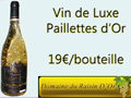 Le Domaine du Raisin d’Or présente son Vin blanc de Luxe Haut de Gamme Sauvignon de Saint-Bris de Bourgogne avec des paillettes d’or 22 carats alimentaire (utilisé en boulangerie), et un vin sans paillettes d’Or d’ AOC Saint-Bris.